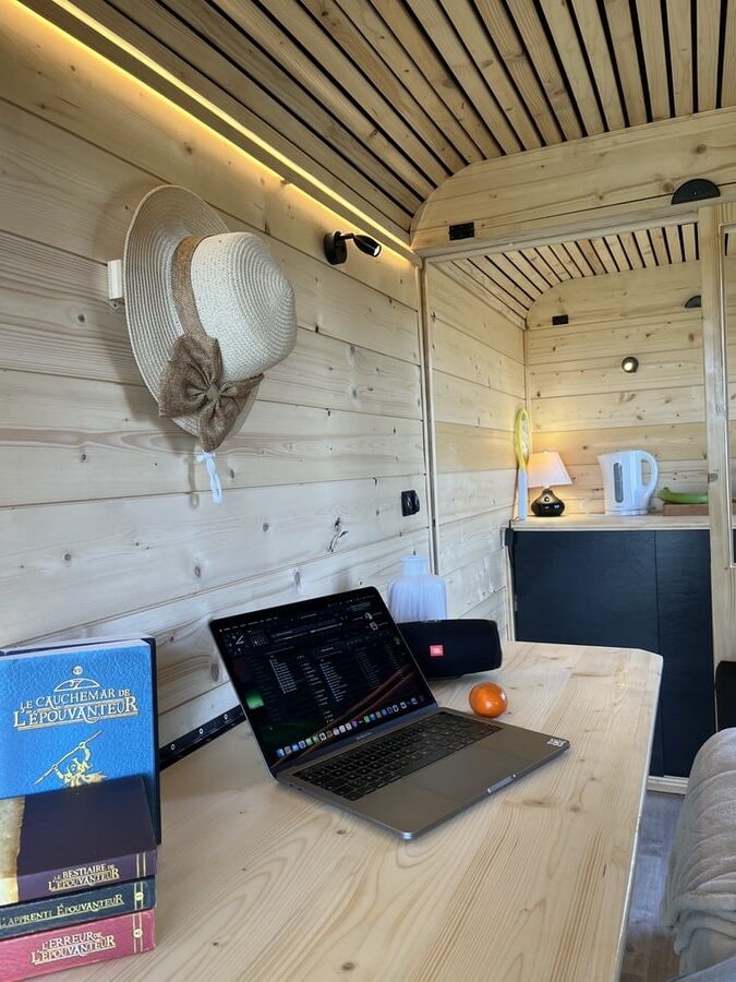 Transformez votre utilitaire en un espace de vie chaleureux et pratique avec le module salon/chambre. Grâce à son lit peigne 140×190, sa mousse pliable pour un canapé confortable, et ses nombreux rangements, ce module allie confort et organisation. Parfaitement équipé avec prises USB, liseuse, et éclairage intégré, il s’adapte à vos aventures comme à vos moments de détente.