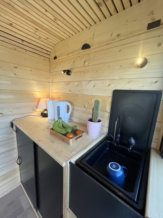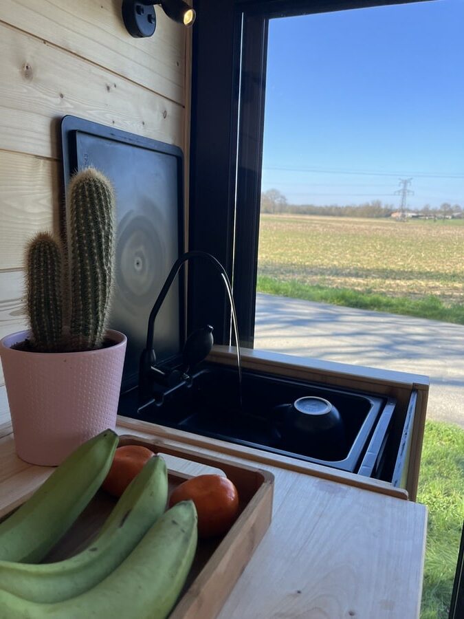 Préparez vos repas où que vous soyez grâce au module cuisine compact et fonctionnel. Équipé d’un évier, de meubles de rangement et d’un plan de travail, il est conçu pour maximiser l’espace. Ajoutez un réchaud gaz ou une option énergie autonome pour encore plus de liberté. Compact, pratique et esthétique, il simplifie vos escapades culinaires.